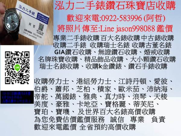 全省高價收購專線:0922583996 阿哲 泓力二手錶鑽石珠寶收購