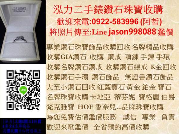 全省高價收購專線:0922583996 阿哲 泓力二手錶鑽石珠寶收購