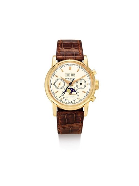 蘇富比秋拍成就亞洲拍賣史上最貴腕表:一枚百達翡麗 2499 型號罕有粉紅金萬年曆計時腕表備月相顯示,以約 9,300萬元成交。圖/蘇富比提供