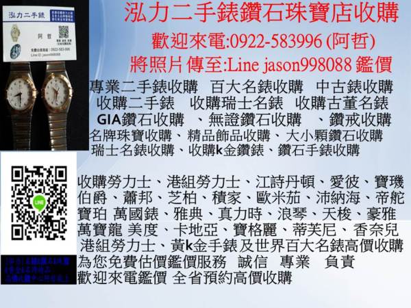 全省高價收購專線:0922583996 阿哲 泓力二手錶鑽石珠寶收購