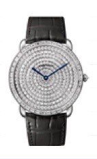 卡地亞Ronde Louis Cartier腕表,36毫米白k金鑲鑽表殼與表盤、卡地亞1847 MC型工作坊精製手上鍊機芯,555萬元。圖/卡地亞提供