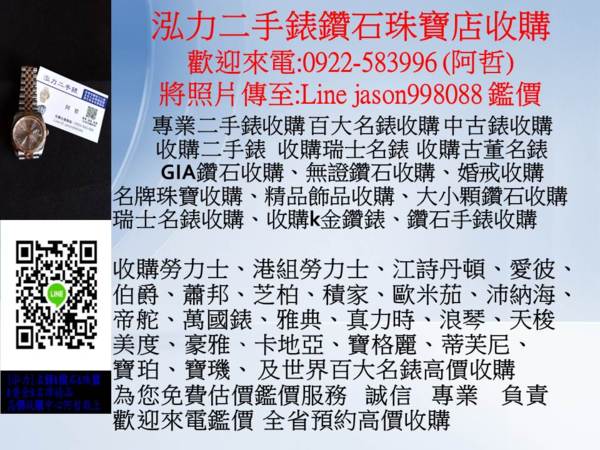 全省高價收購專線:0922583996 阿哲 泓力二手錶鑽石珠寶收購