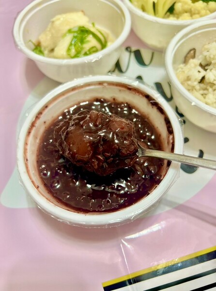 而紫米桂圓甜湯則是一碗讓人心情愉快的甜湯,紫米Q彈桂圓的香氣十足,湯底清甜卻不膩。