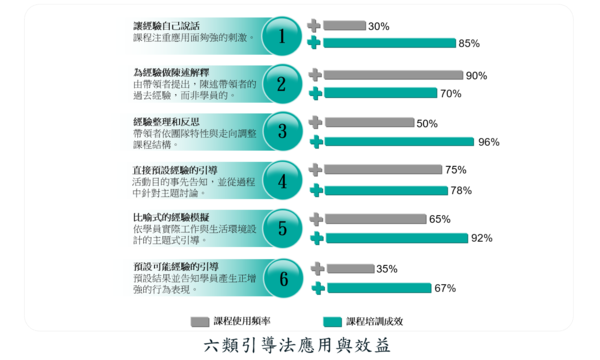 唯不同的訓練模式在同一水平下所呈現的效益也不盡相同,運用活動只是帶領者的戲法及工具,其中課程設計、帶領者專業素養及運用引導反思技能將訓練主軸具體化之強弱,方是團隊建立成敗關鍵。