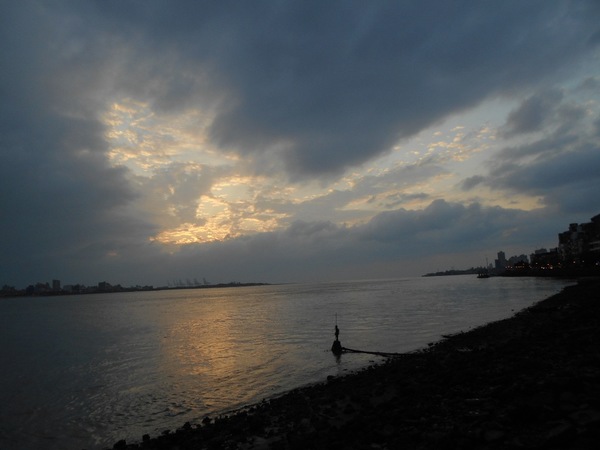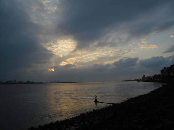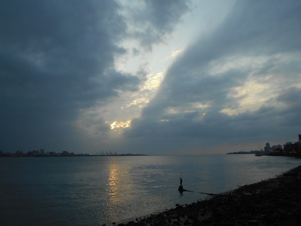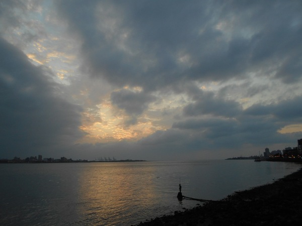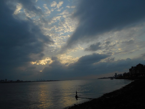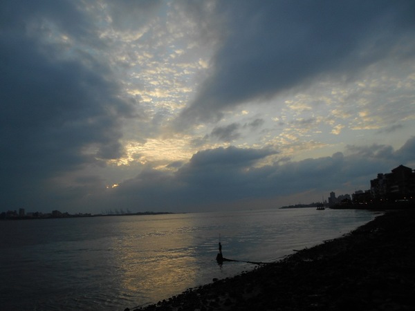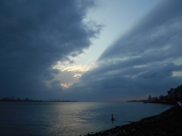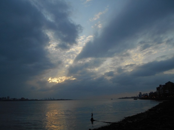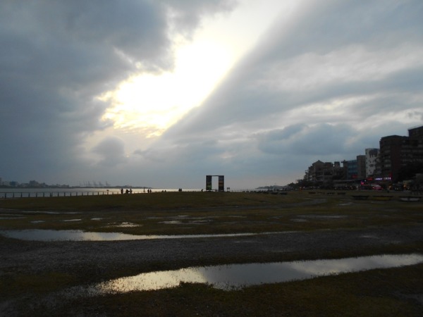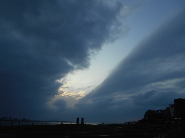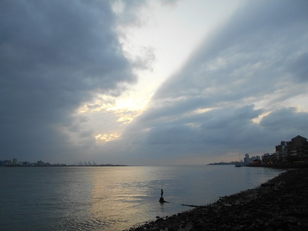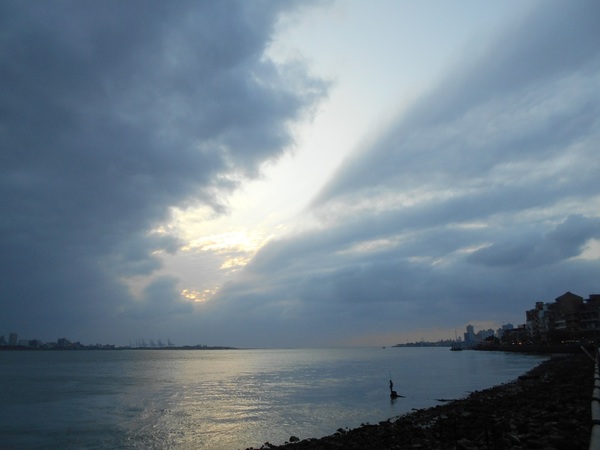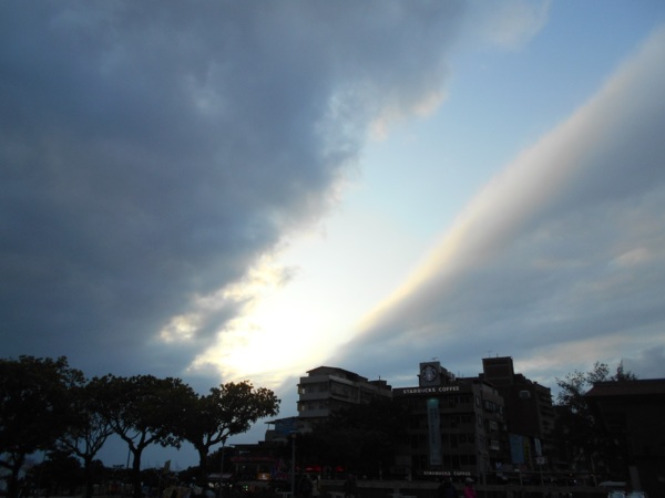 昨天天空是灰色的,在傍晚時烏雲像被撥開似的出現一條亮亮的光