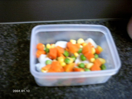 步驟三:準備馬鈴薯, 冷凍蔬菜與玉米粒醬已微波加熱至熟透