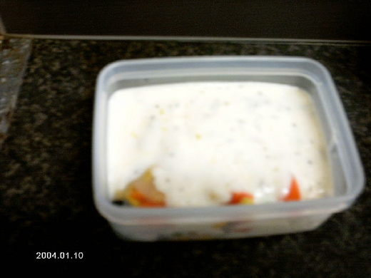 是依據『型男大主廚』的”微波爐出好菜 - 白醬鮭魚”的步驟製作意大利白醬