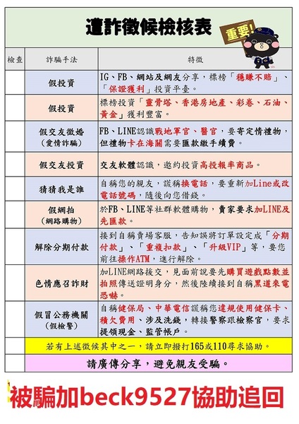 👉 出現3項以上,幾乎可以判定是詐騙。