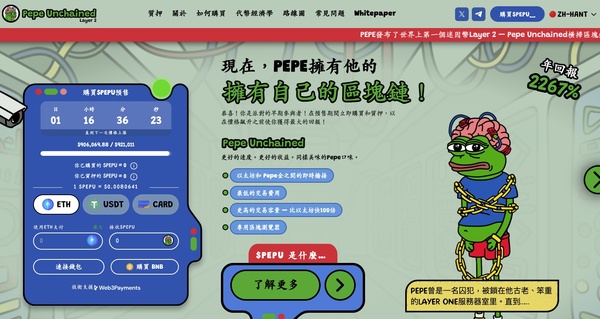 在加密貨幣世界中,meme幣一直以其獨特的魅力和高回報吸引著大量投資者。其中,Pepe Unchained ($PEPU) 是最新的熱門meme幣。這篇文章將詳細介紹Pepe Unchained的特點及其潛力,並探討其在以太坊層二上的優勢。