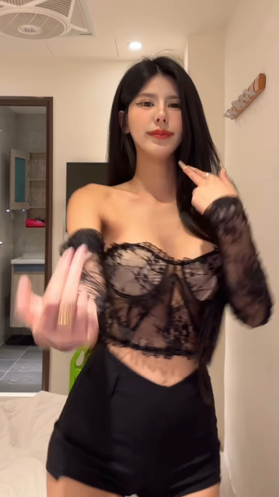 舞動的美姿太誘人,光是那蕾絲馬甲包覆著纖瘦又勻稱的美體,飽滿的雙峰乳型就十分吸睛,搭上高腰短褲可見翹挺的美臀,扭腰擺臀的模樣自信又性感,雙指再來點摳摳摳,真把老司機的理智線給摳斷了!