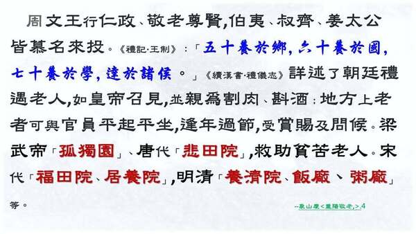 [6] 馮聞文<中國的敬老養老>,謝元魯/王定璋《中國古代敬老養老風俗》