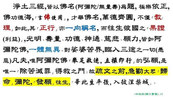 (2).念佛為先(定散在後),「上來雖說定散兩門之益;望佛本願,意在眾生,一向專稱彌陀佛名。」