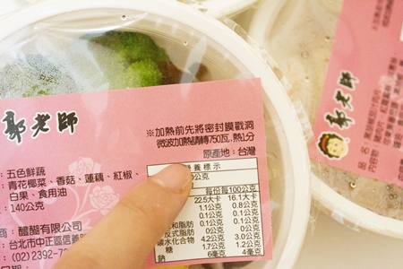 拿到餐點的時候不用擔心不知道吃什麼,碗上都會貼上詳細的營養標示,看過這些內容的我,覺得他們很用心給媽媽製作月子餐,都選一些不錯的食材,另外上面還有教怎麼微波加熱,一定要記得微波的時候要戳洞,這個動作可別忘記了