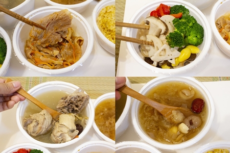 先來帶大家看看月子餐,月子餐其實我試吃過不少家,最後才選擇了郭老師,因為他們不使用豬內臟哪些,比較符合我平常飲食,然後每餐基本都是五道這樣,就分成米食類、主食類、燉品類、時蔬類跟甜品類