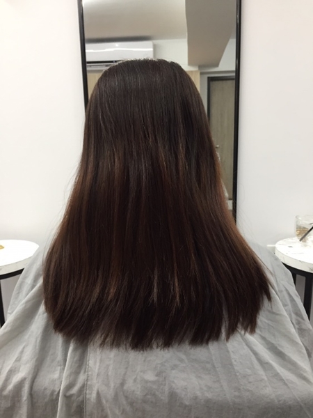結果成果超級美~為了讓顏色柔和,設計師有用手刷染的手法幫我把髮尾的顏色染淺一點,整體是漸層的感覺,讓簡單髮型中搭配出微妙的線條感~卻能創造出融洽的美感!