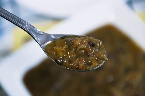 綿密的蔬菜牛肉粥含著滿滿營養