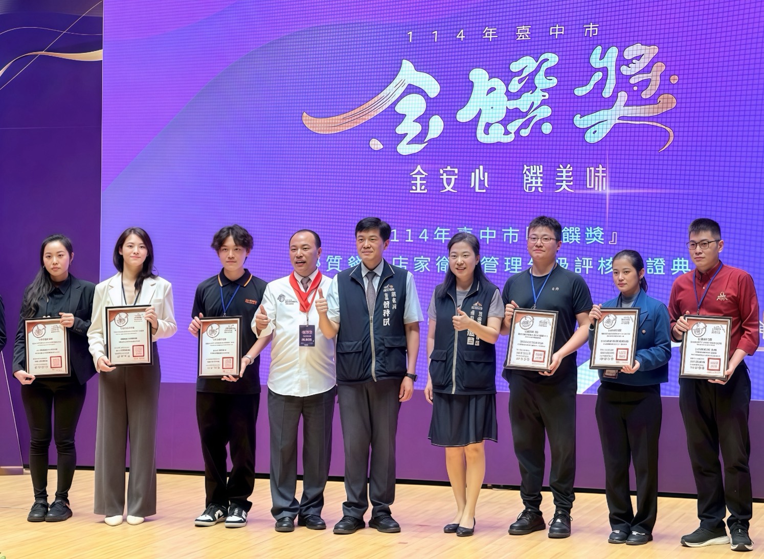 ▲焦糖楓榮獲「台中金饌獎」評核優良餐飲業者。(左2)焦糖楓執行長陳妍霖(圖/焦糖楓提供)