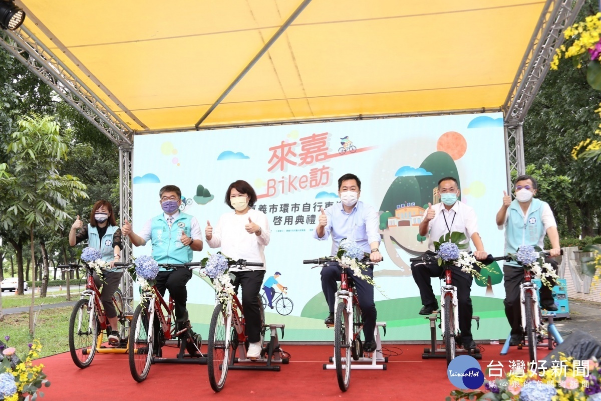 嘉義市環市自行車道今(13)日舉行啟用典禮,市長黃敏惠感謝內政部政務次長陳宗彥、內政部營建署副署長吳宏碩等人,親自到場見證,也向辛苦認真的市府團隊、幕後工程人員等致上謝意,感謝大家的付出與努力,環市自行車道才能順利完工啟用。