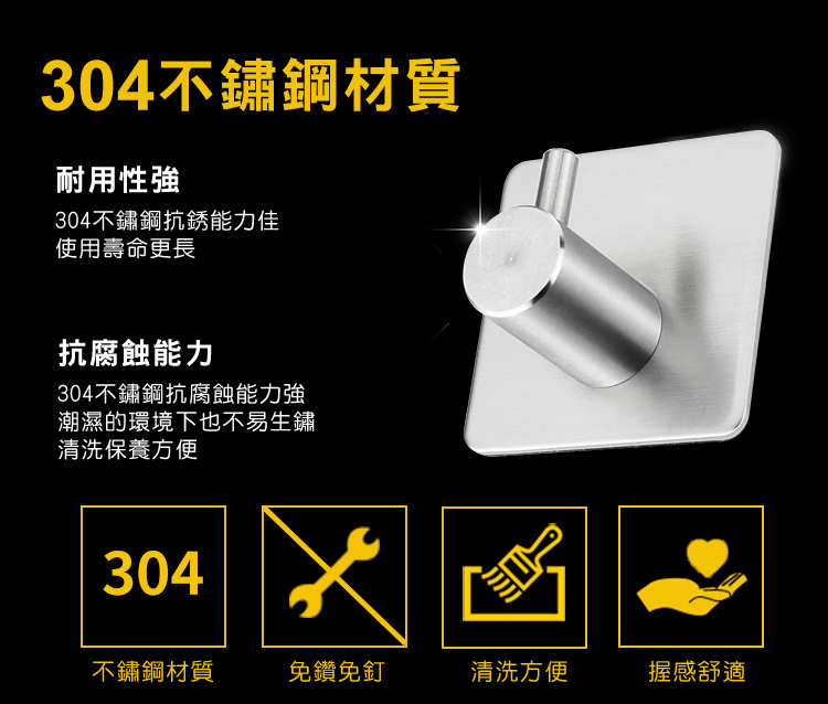 【iRoom優倍適】免釘無痕304不鏽鋼粗柱掛勾(4入組) 的產品介紹在下面,