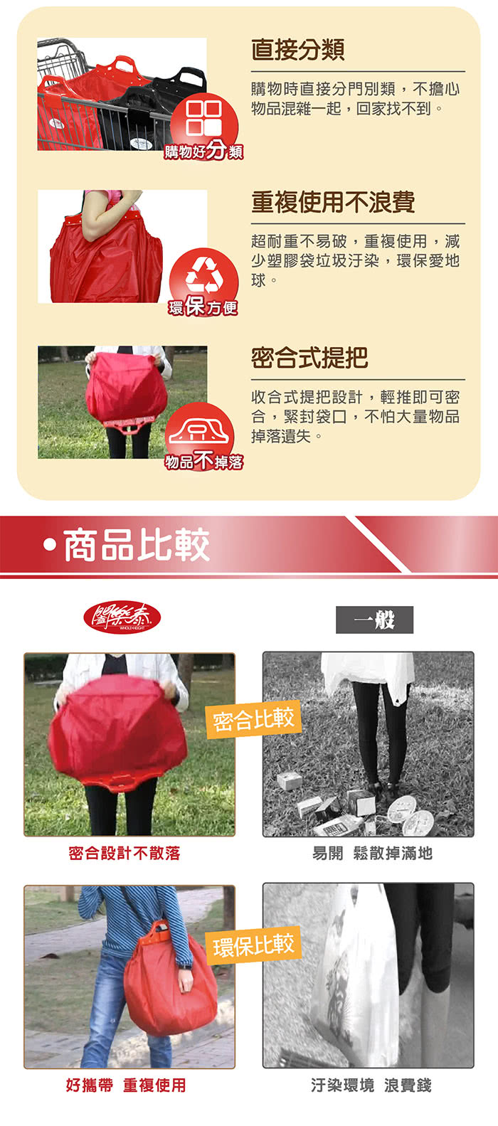 【闔樂泰】專利Shopping包(紅大) 的產品介紹在下面,