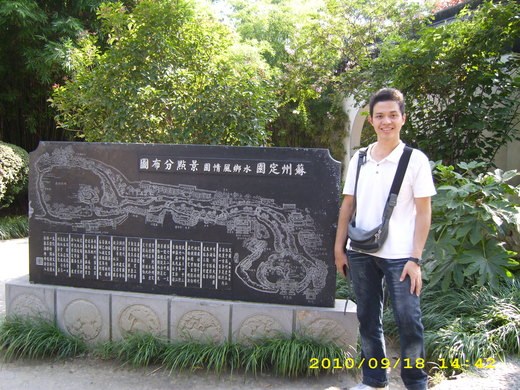 整個園景像似一座小迷宮,遠方的路總是會被樹葉給遮掩…讓我分不大清楚方向,幸好路程還算簡單,跟著人群走呀,就不用擔心有走不出去的問題,而在這邊我觀賞的心情,跟在寒山寺有很大的不同…在去寒山寺之前,我就已知道寒山與拾得的故事了,其實也可以說…我是嚮往著那段傳說故事,因此才很想去那與故事相關的地方走走,可這裡又不一樣了,雖然我知道這裡是個古蹟,但卻不知道其背後隱藏的故事,可在導遊的解說下我也慢慢的知道了,想不到這裡的典故還跟<唐伯虎>有關,因此我也看到了江南四大才子與秋香的人像,雖然我不知道其真實性為何…呵呵!!不過旅遊的心情本是恬適,既是如此的話又何必執著呢??所以其實我也不管導遊講的真實性,只是盡情的把自己的身與心,倘佯在樹陰與微風的懷抱裡。