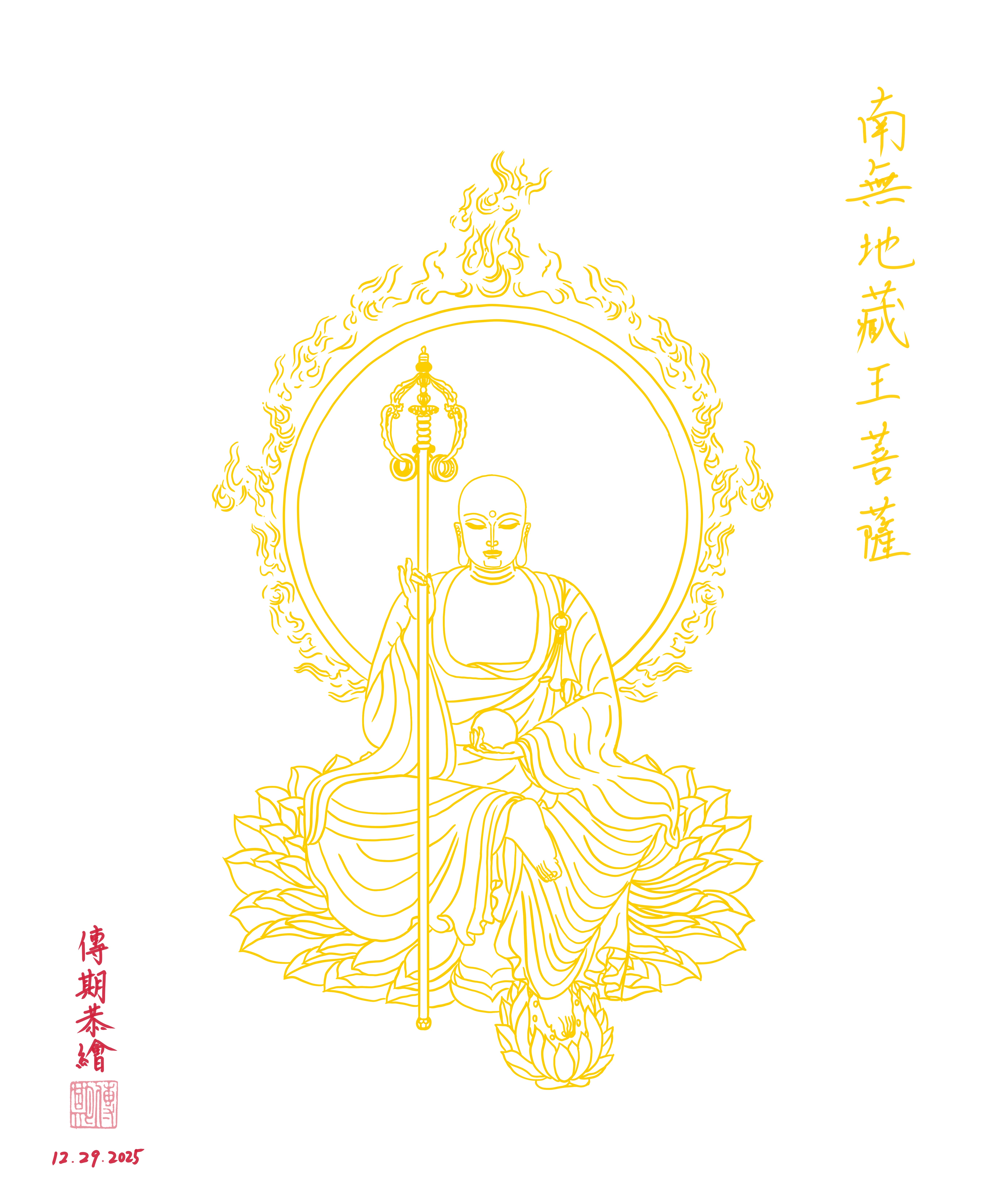 歲末,僅以此畫,為眾生求懺悔,為世界祈福。祈願來年,國泰民安,天下太平,世界和平,風調雨順,眾生和合,大家都平安,吉祥,健康,自在,順心,如意。