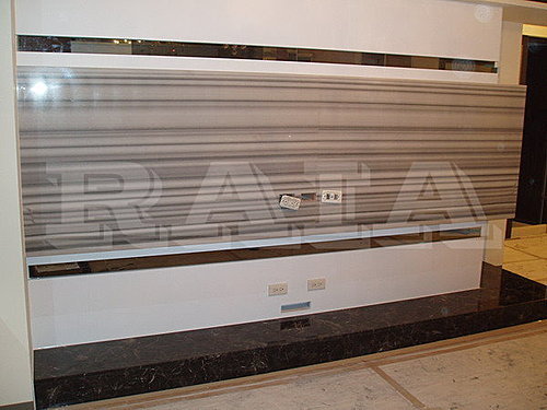 RAIA瑞亞石材 大理石主牆 電視牆(千層玉) 矮櫃(黑金峰) 千層玉屬於化石類石材 是一種紋路性質的大理石 運用在電視牆主牆時 紋路走向通常呈現二種型態 1.橫線型態(圖1.) 2.直線型態 ...