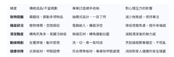 大一廚櫃訂造收納邏輯與壓力緩解指標對比