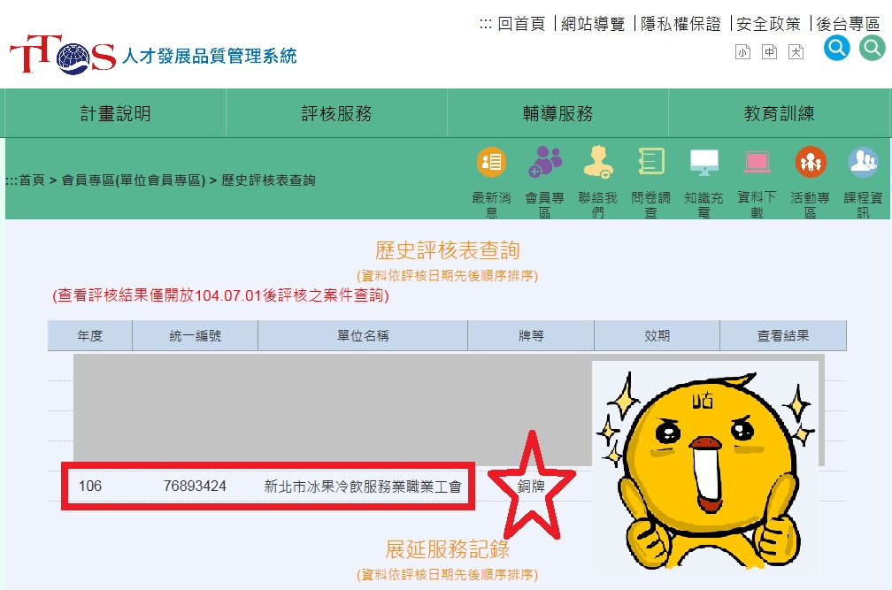 賀!新北市冰果冷飲服務業職業工會,人力培訓品質受到肯定,106年獲得勞動部勞動力發展署頒發人才發展品質管理系統(TTQS)「銅牌」認證。