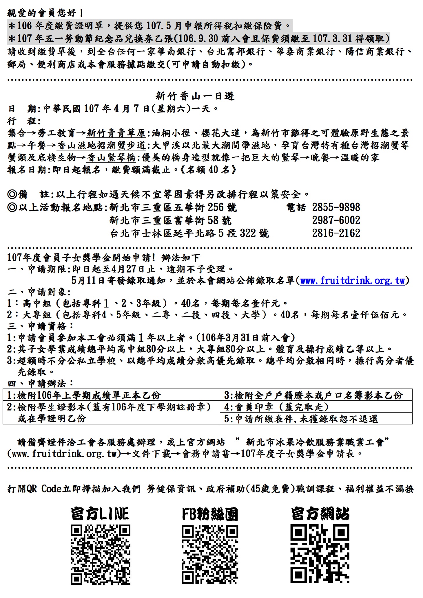 新北市冰果冷飲服務業職業工會 107年04-06月會訊