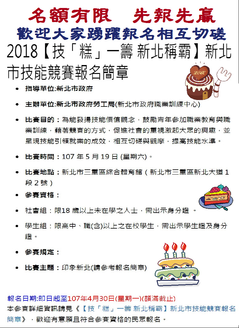 107年新北市政府-幸福餐車免租金攤位報名 受理至額滿為止
