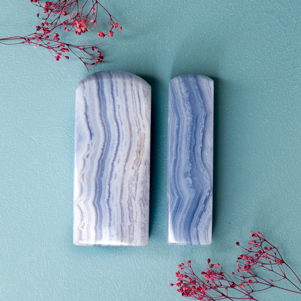 👉 作為五月和九月的誕生石,藍紋瑪瑙的藍色象徵著冷靜和永恆。它能賦予人優雅、沉着、有耐性和豐富的創意,就像湖水中自在嬉戲的精靈,帶來純淨而親和的能量,為心靈帶來漣漪般的寧靜。這種寶石被視為保護之石,可以消除噩夢、壓力和疲勞,散發出恬靜的氛圍,令內心平靜、減少怒意和焦慮。同時,它還能使人更加忠貞和可信賴,成為克服困難、堅持追求重要目標的堅強之力。