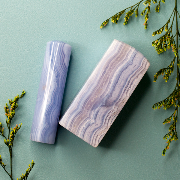 👉 藍紋瑪瑙,又稱為「藍紋玉」、「紫瑪瑙」,是一種古老而珍貴的寶石,主要產於巴西、美國和澳洲。它是以玉髓礦物為主的紋帶塊體,屬於隱形晶體石英礦物。藍紋瑪瑙的淺藍色晶石上呈現精緻細膩的白色條紋,如同晴空中朵朵綿雲般優雅。純淨的藍色讓人聯想到海洋、天空和水,散發出美麗、冷靜、理智、安詳和廣闊的氛圍。藍紋瑪瑙具有沉穩的特性,能平靜內心、減少焦慮,尤其適合那些容易緊張和焦慮的人。