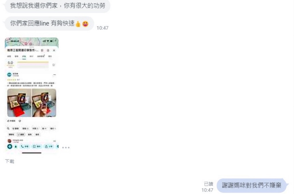 「你們回覆很快 👍😍」