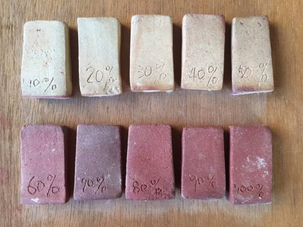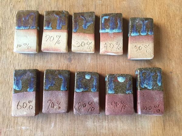 大肚山赭紅土創作,前導性實驗,試片測試。唯因區域土層各種土的元素含量差異。仍會有燒製發色及特色茶異。