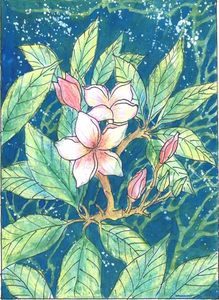 內有3棵百年老樹,因雞蛋花為夾竹桃科雞蛋花又稱「緬梔」、且每當到了落花繽紛的時節,走在老樹下都可以聞到一股淡淡幽香的氣味,陣陣撲鼻而來,再加上傍晚有夕陽的陪伴,不禁令人感到這真是一個遠離塵囂的世外桃源阿!