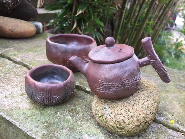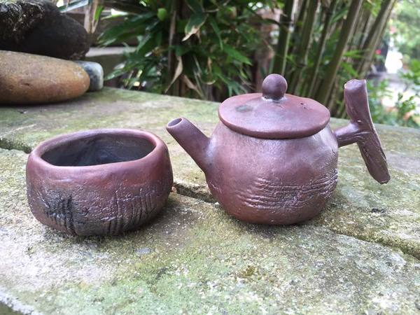 50%大肚山赭土與一般陶藝土特調之專用'調配土'手揑茶器,高溫1260度柴燒成品。