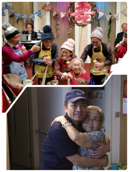 慈母齒搖髮斑白, 望眼欲穿倚窗台; 遊子異國為異客, 每逢佳節鬱傷懷。
