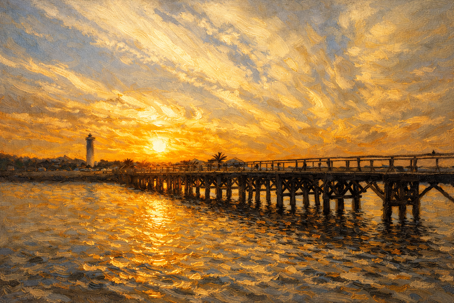 After work, I felt no rush to return home. Instead, I wandered by the bridge, just a few miles from home. The streetlamps glowed into a soft saffron haze, their light shimmering upon the ripples, as dusk stepped quietly into my life. The afterglow, with its soothing hands, gently closed my eyes—closed my eyes.