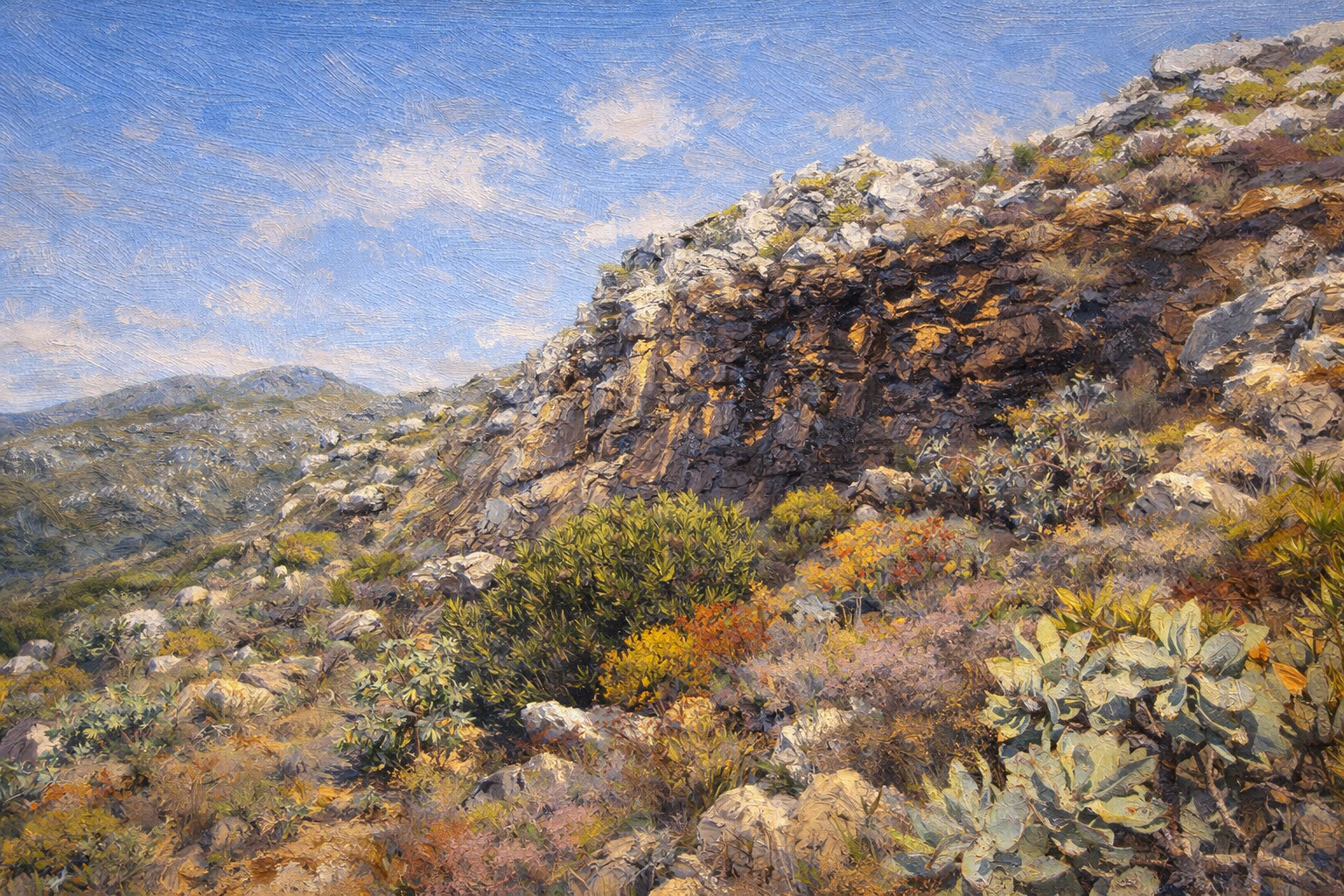 Reaching the heights, I gaze toward the distant east, where the blue Indian Ocean lies. In my mind’s map, I locate Gordon’s Bay—standing in silent dialogue with Muizenberg across the water. The bay named after the General sits at the edge of my vision. Having walked from the Atlantic to overlook the Indian Ocean, my thoughts drift back to 1795. I contemplate a history of blood and tears; I walk a path of thorns.