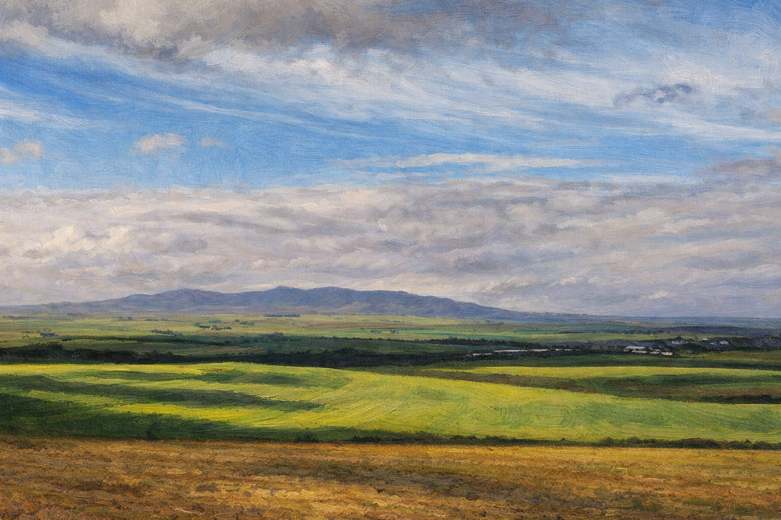 Winter is necessary, a gift of rain to return green to the land. On a Sunday afternoon, as the sun briefly appeared, I drove to that familiar place. The hills rose and fell like waves before my eyes, while light moved through layers of cloud of varying depths. Open grassland; wide and quietly at ease. Traveling through these green plains, one’s vision blurs in the vastness, and the edge of the self fades in such ease. Upon the rolling hills, a sudden clarity: sky high, earth far.