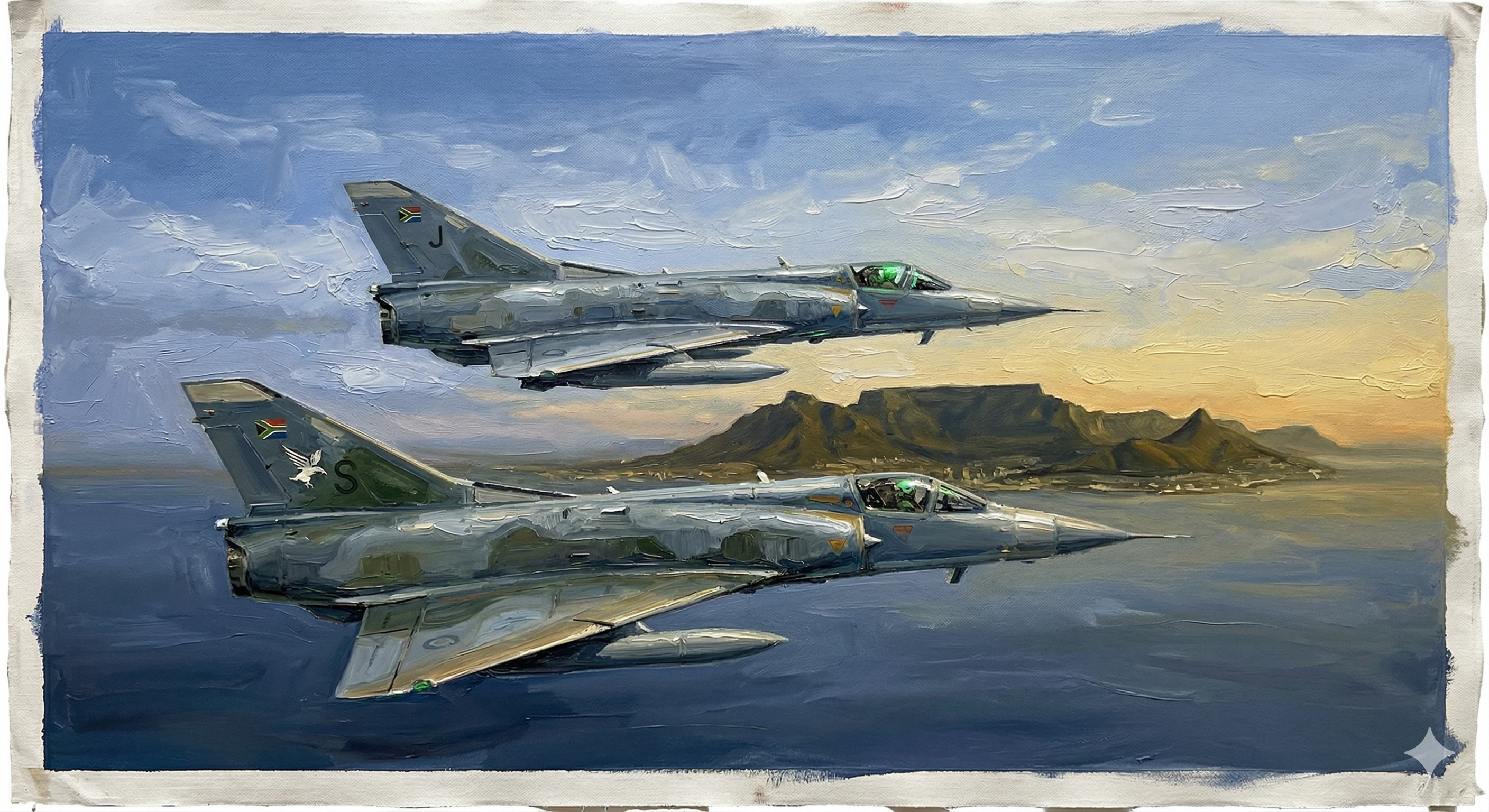 「我在卡魯的農場長大,」上校的聲音和緩,語氣帶著時光的溫度。「那裡的天空不只是空間,而是寬廣的國度。當我剛加入南非空軍,我並不只想當飛官,我想要做國度的守護者,我想要統御這片滋養土地的空氣。從三萬英呎的高空俯瞰,眼光掃過彩虹國度的每寸土地,從紅色的沙丘到綠色的山谷,在我機翼之下盡皆安全。」