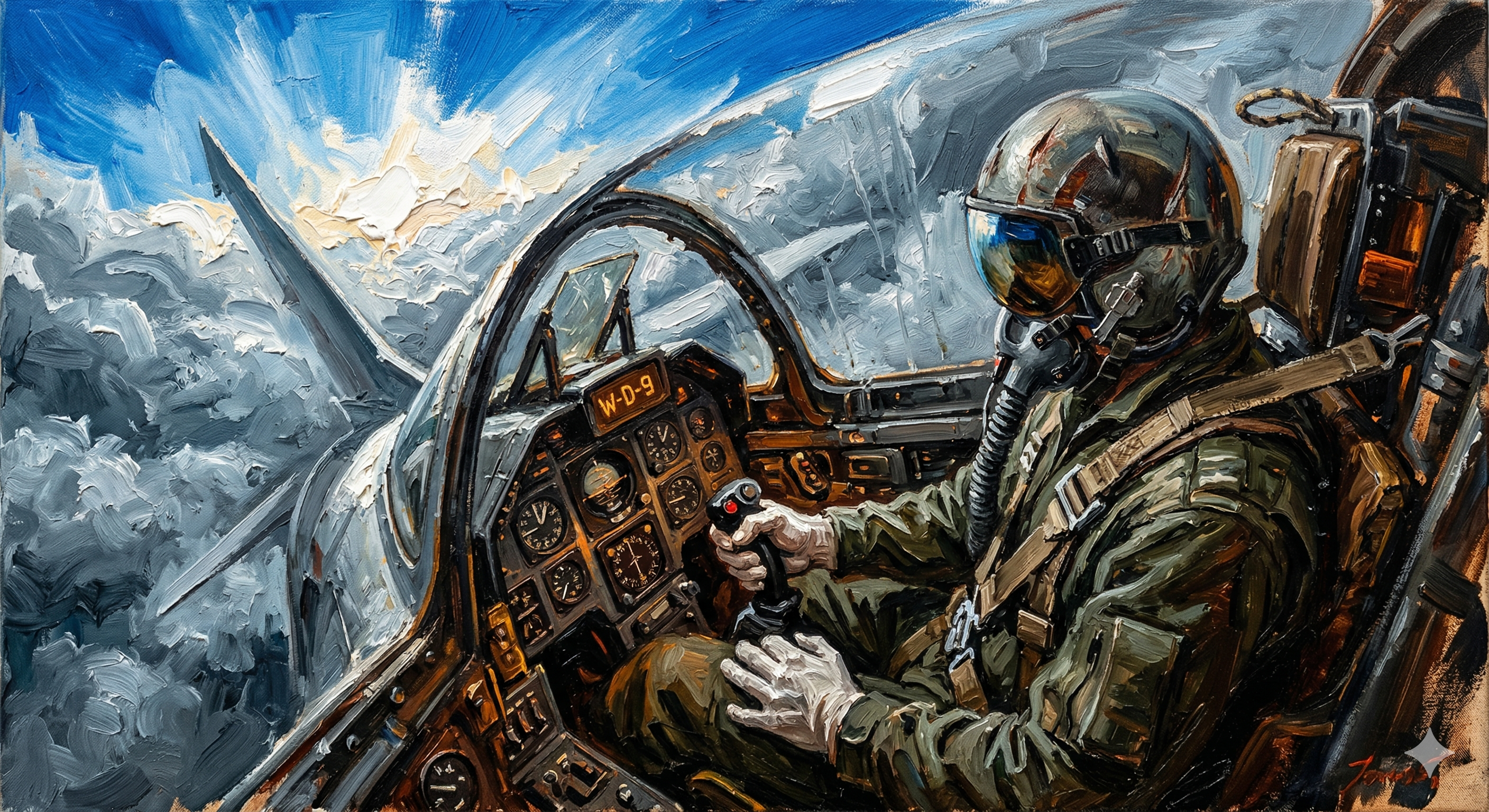 「飛官,說得漂亮!」上校的聲音再次恢復砂紙般的粗糙。「如果你想守護彩虹國度,而不是用你的飛機殘骸在土地烙印黑壓壓的焦痕,那就證明你理解『熱浪突增時的不可預測航向修正』。如果你無法駕馭風,你永遠無法駕馭天空。」