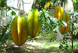 一攤,擺著楊桃,肉片厚厚的、呈現金黃色誘人的光澤,挺像卓蘭特產,這種等級逃不出我銳利的法眼,絕對是上品。
