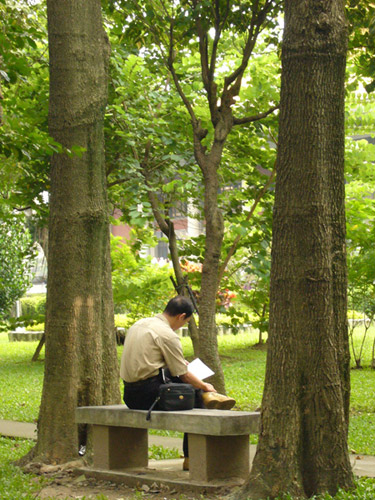 正值下班時刻,來往人群中,發現寧靜悠閒的片刻。