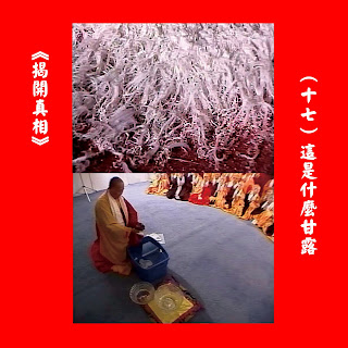 當宣佈打開衣缽時, 果然佛陀降下了甘露,這是什麼甘露?不言而喻,當然是阿彌陀佛降下的真精甘露,確實不是人間的物品能代替的,因為這甘露在跳動,是具有靈魂生命力的,而且異香撲鼻,降甘露的同時,缽中還降下了一百多顆五彩舍利。