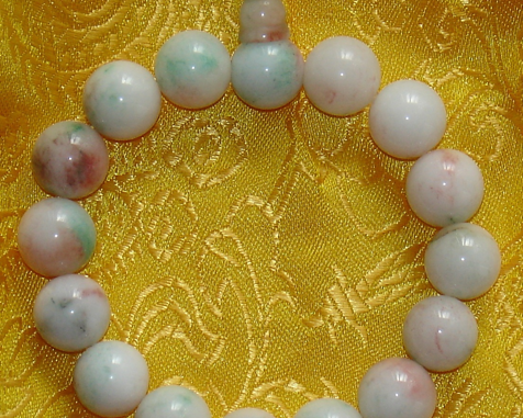 我聞聲而去,看見我太太手裡拿著她的那串彩石佛珠,喜笑顏開。