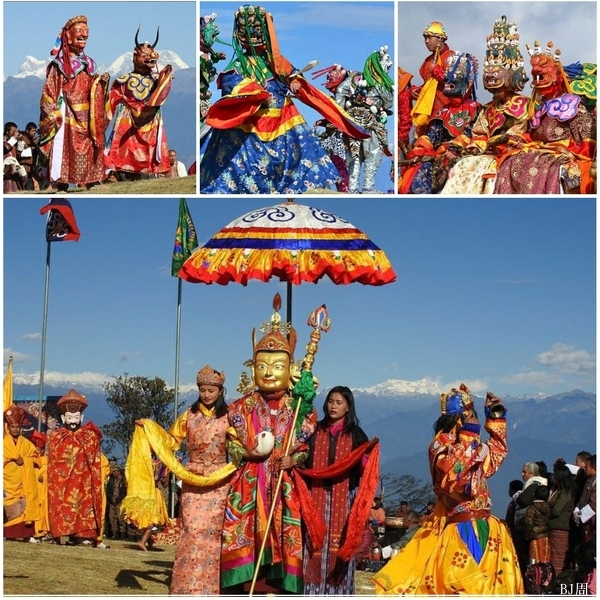 節慶上還有面具舞,展現蓮花生大士降服當地惡靈、鎮壓邪魔的意義,其實是一種「超渡、淨化」的儀式表現,與大丘拉108座佛塔的搭配相得益彰,傳遞了大自然對人類的啟示,也詮釋了不丹謙卑敬天的安邦立身之道。