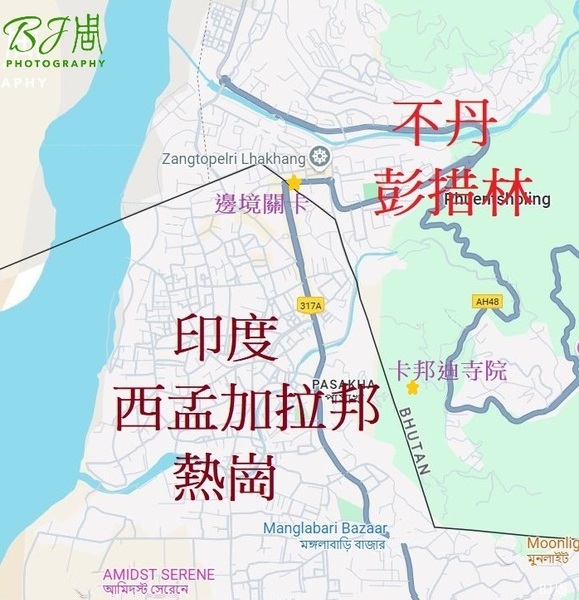 但從不丹彭措林進入印度卻不是走河面,而是穿過設立在雙邊同一條街上的邊境關卡(Bhutan India Zero Point)。