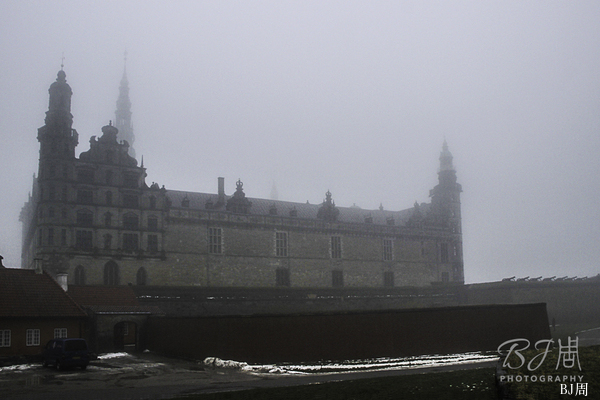▲丹麥冬晨,在陰霾濃霧和冰雪鋪地中,我獨自走進了氛圍正好的克倫堡▼